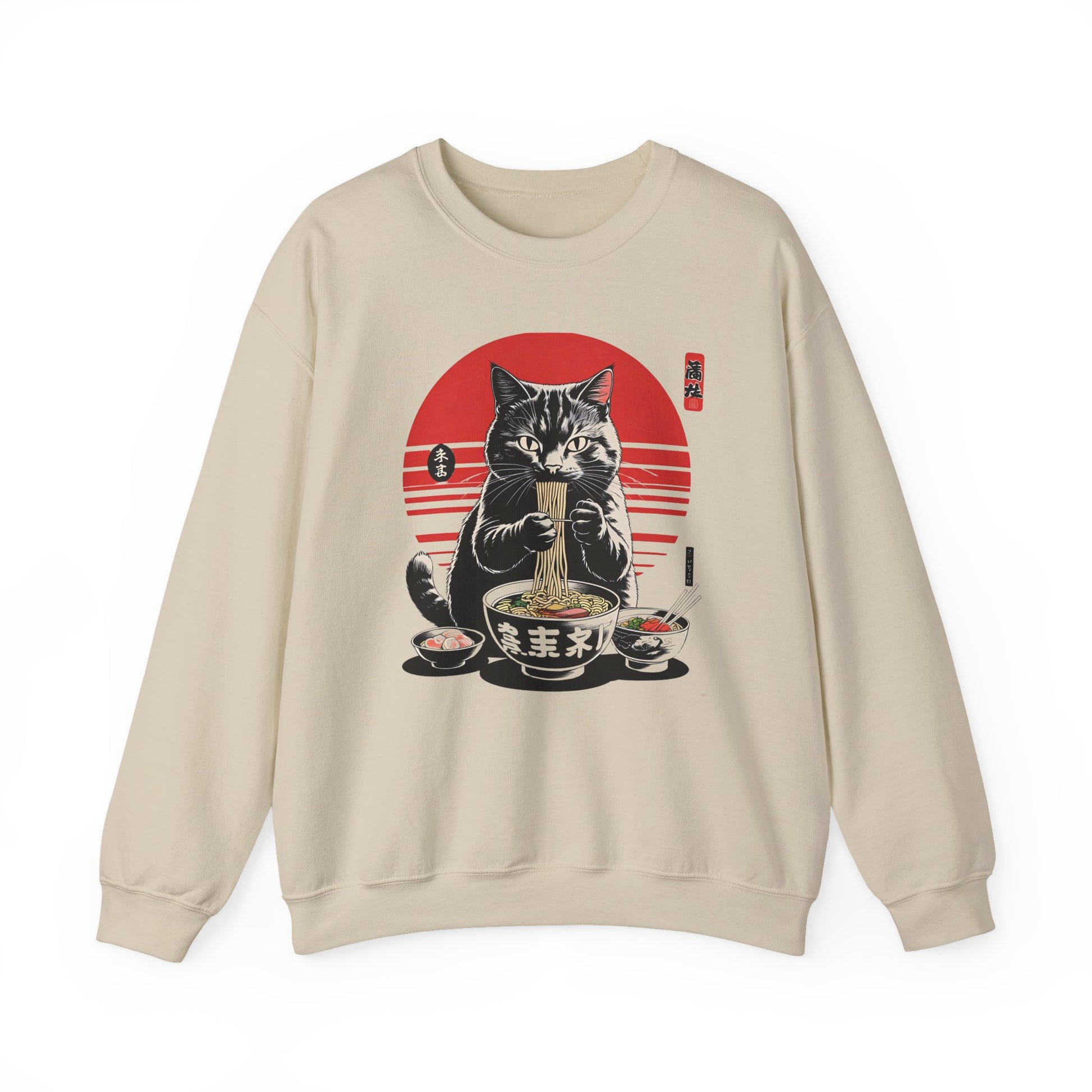 Cat Ramen Lover Sweatshirt | Cozy Unisex Crewneck | Gift for Cat Lovers, Anime Fans, Perfect for Fall, Birthdays, Holidays