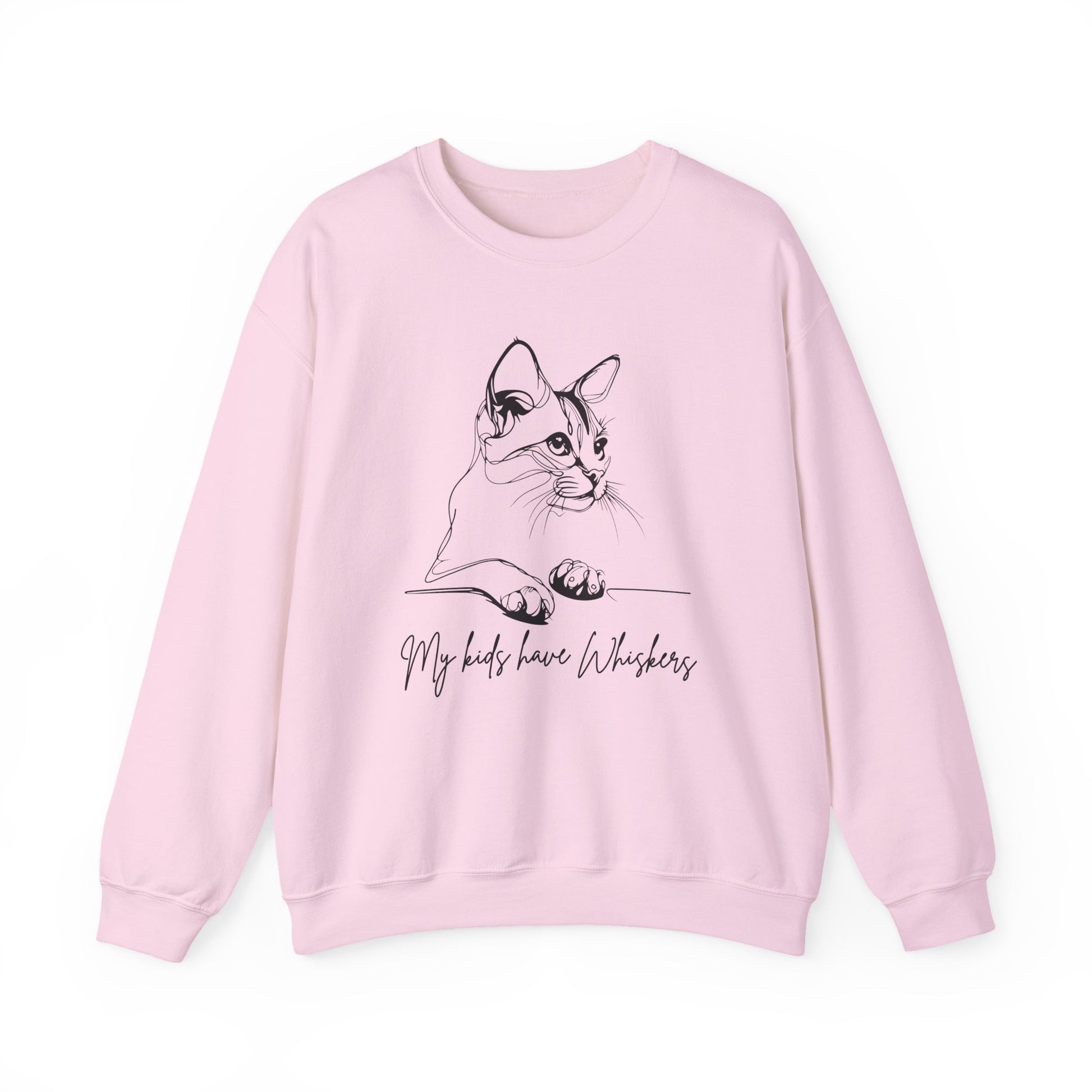 Cozy Cat Lover Sweatshirt, My Kids Have Whiskers Design, Unisex Cat Line art Crewneck, Gift for Cat Owners, Pet Lover Apparel