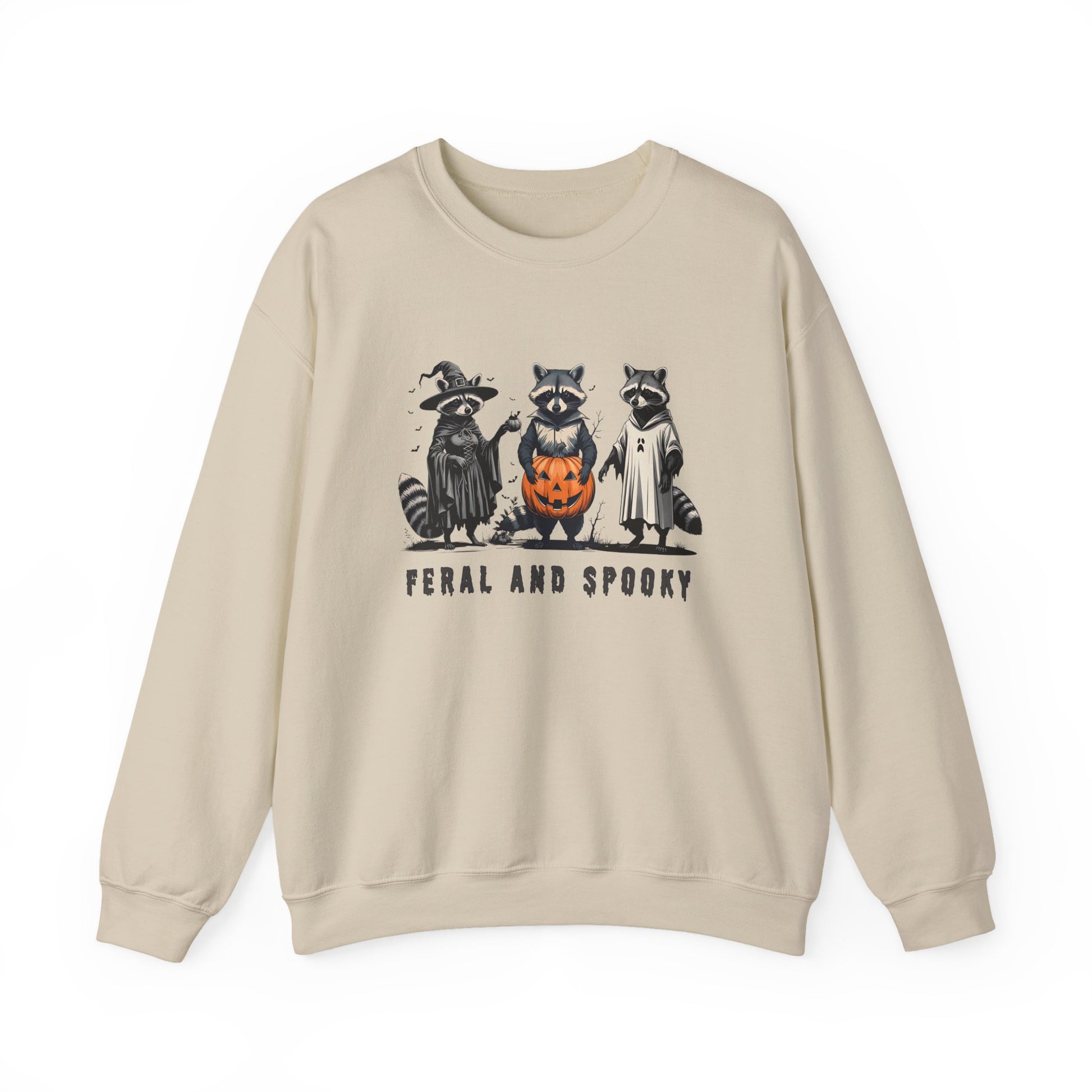 Feral and Spooky Sweatshirt - Cozy Unisex Crewneck for Halloween, Fall Fashion, Gift for Animal Lovers, Spooky Season Attire, Casual Wear