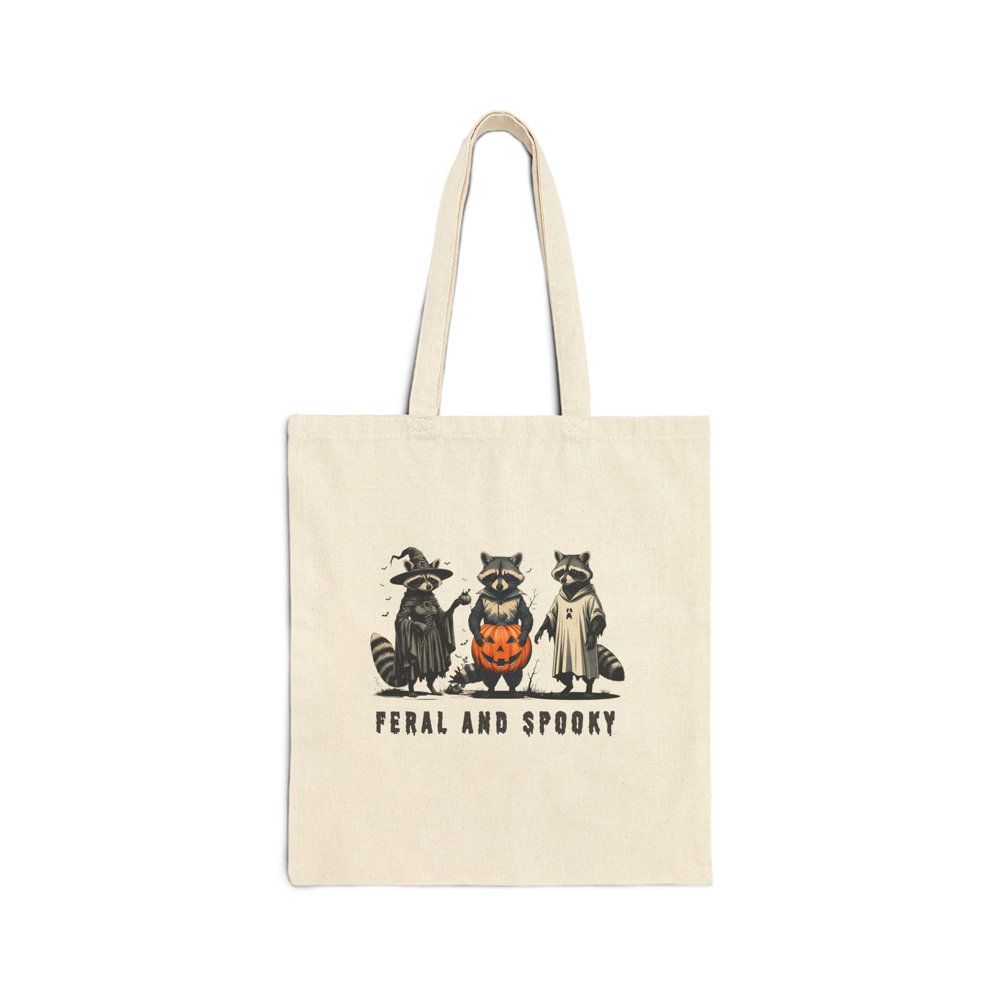Feral and Spooky Tote Bag, Cotton Canvas Shopping Bag, Halloween Raccoon Gift, Eco-Friendly Tote, Witchy Raccoons Lover Bag, Unique Tote for Everyday