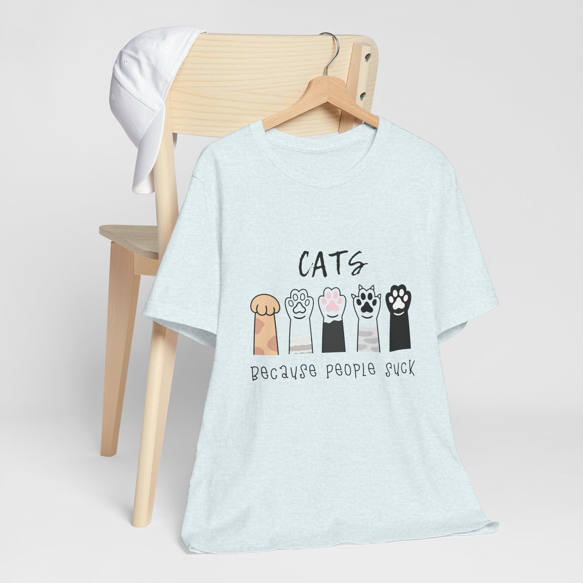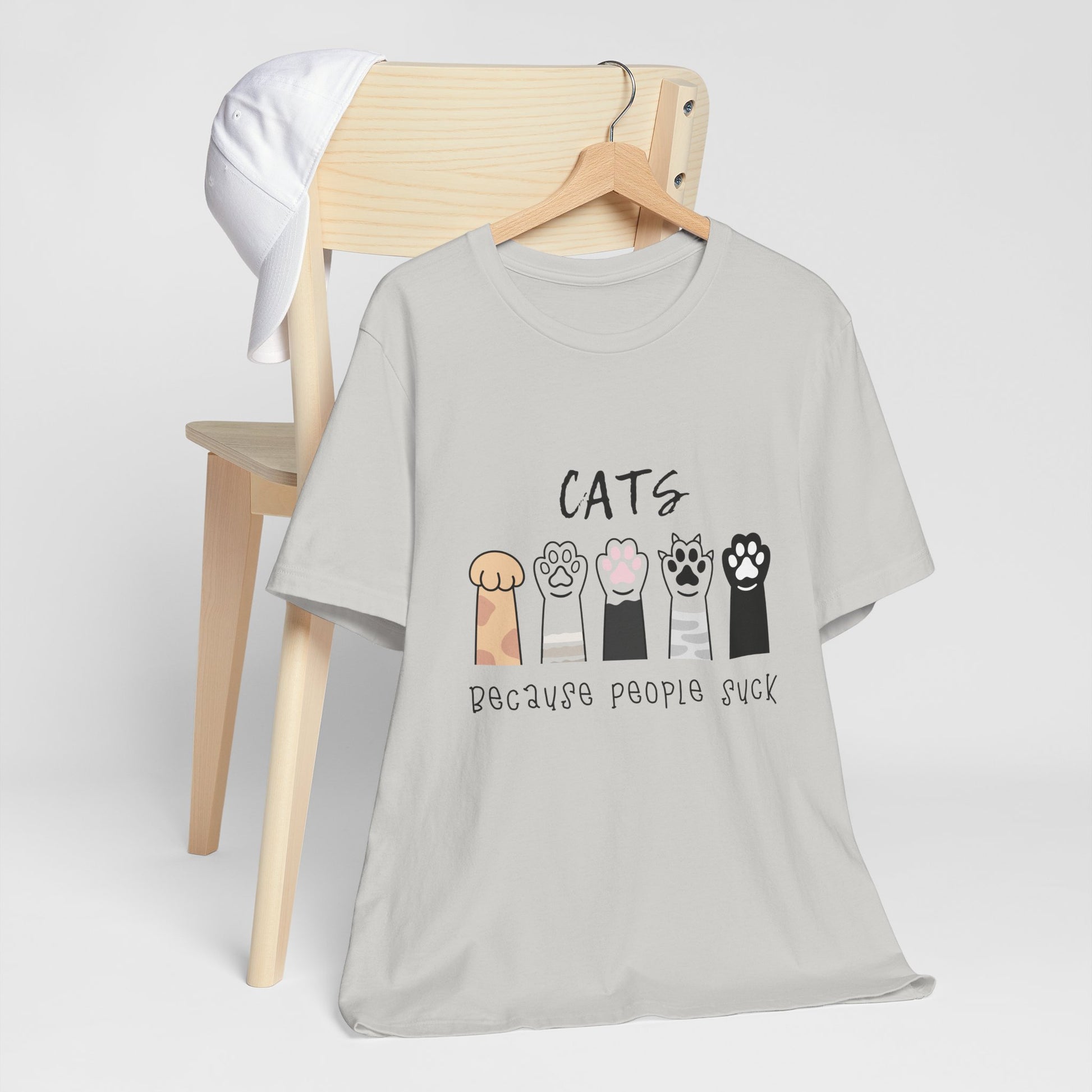 Funny Cat Lovers Tee - 'Cats Because People Suck' - Gift for Pet Owners, Cat Mom Shirt, Animal Lover Top, Humorous T-Shirt, Casual Wear