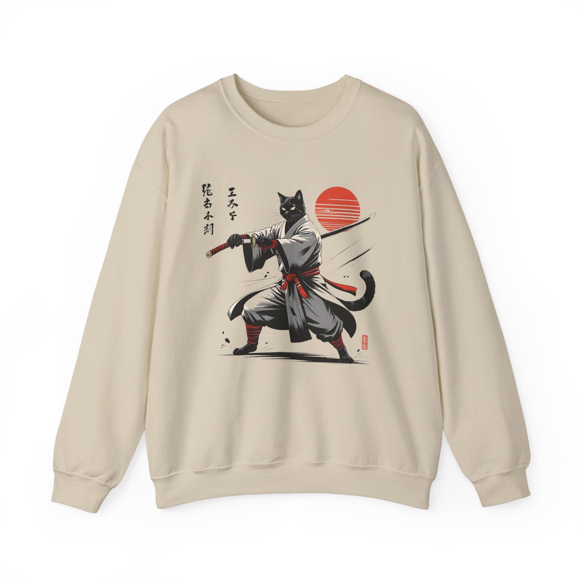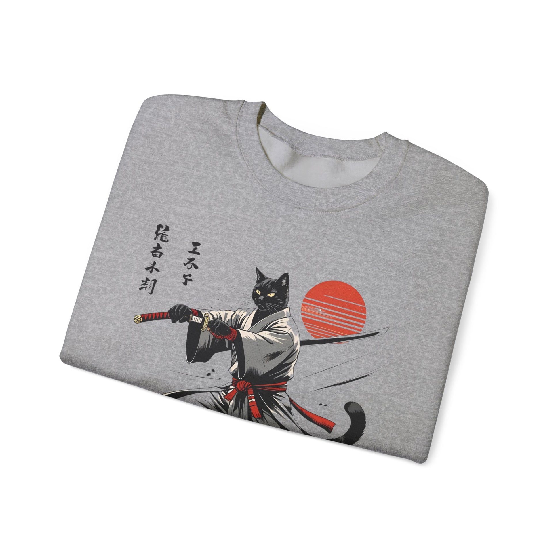 Samurai Cat Sweatshirt, Comfy Unisex Crewneck for Anime Lovers, Gift for Cat Owners, Stylish Streetwear, Perfect for Casual Outings