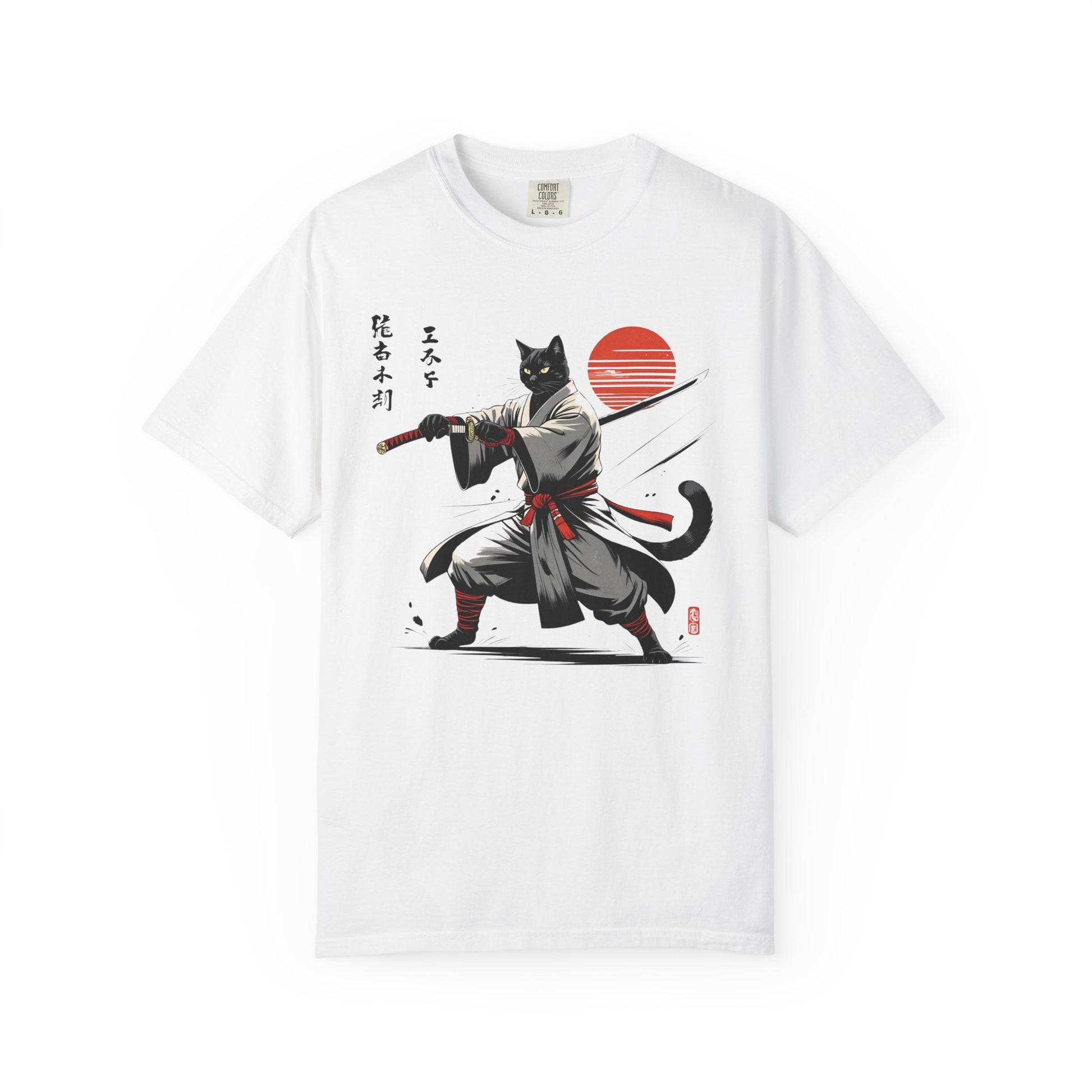 Samurai Cat Youkai T-shirt, Unisex Garment-Dyed Tee, Cat Lover Shirt, Japanese Art Tee, Gifts for Anime Fans, Fun Casual Wear
