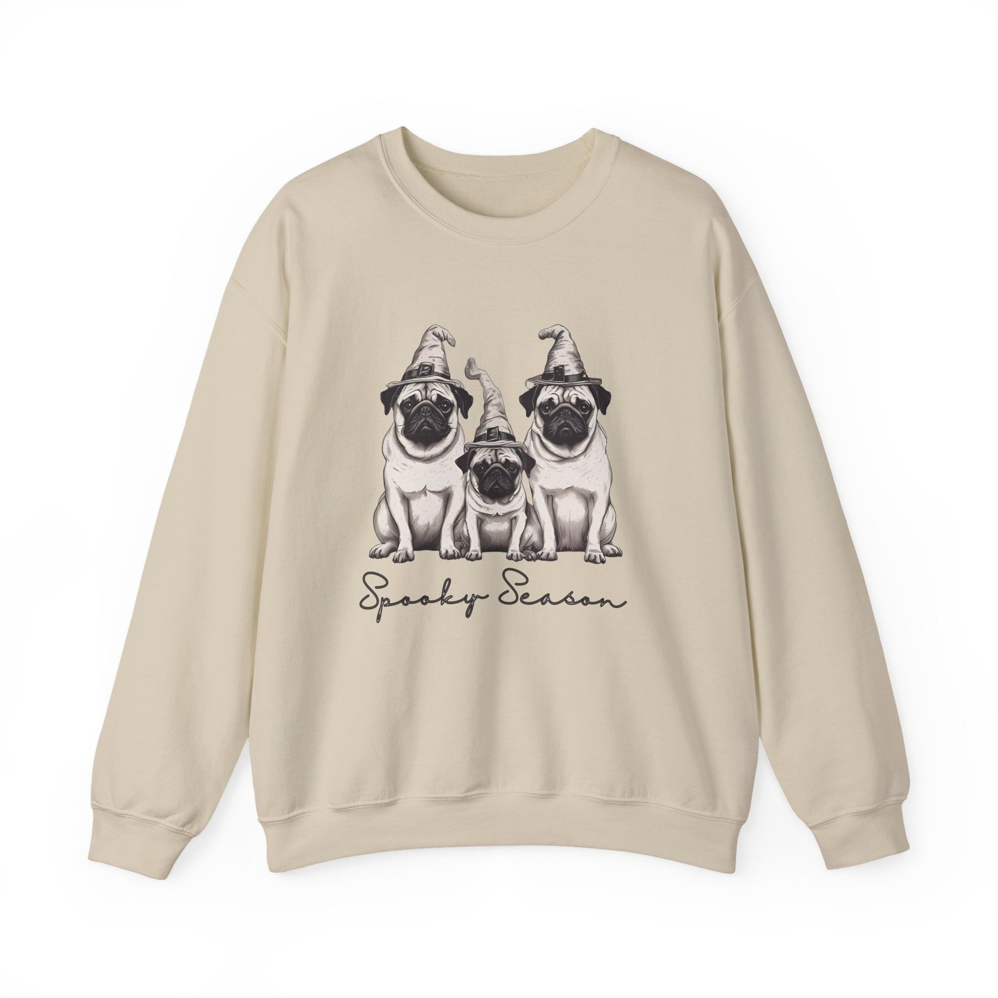 Spooky Pug Sweatshirt, Cozy Fall Apparel, Halloween Gift, Unisex Crewneck, Pet Lover Sweater, Pumpkin Spice Vibes